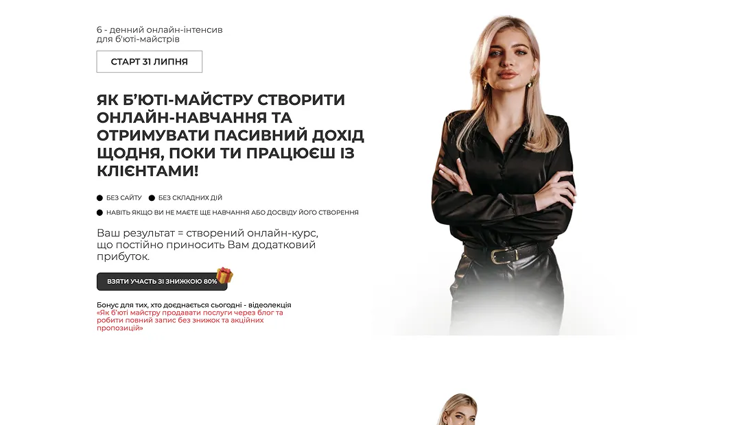 Для мого 6-денного онлайн-інтенсиву було критично важливо пояснити б’юті-майстрам, що створити та продати свій курс реально, навіть якщо немає технічних навичок і власного сайту.
