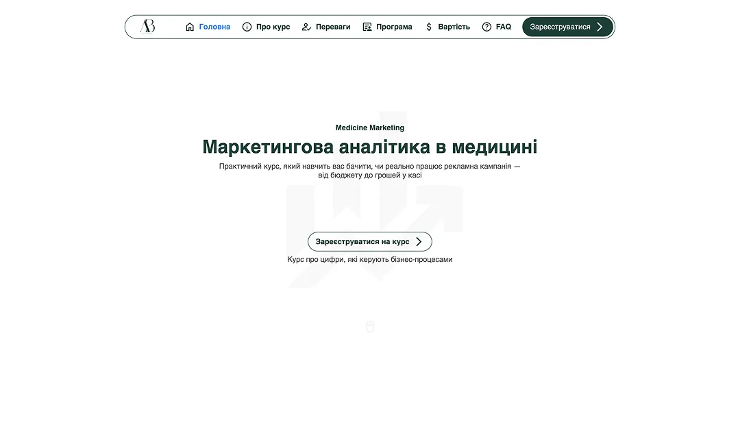 Коли ми запускали курс з маркетингової аналітики для медичної сфери, мені було важливо, щоб сайт говорив з власниками клінік мовою цифр, а не «креативу заради креативу».