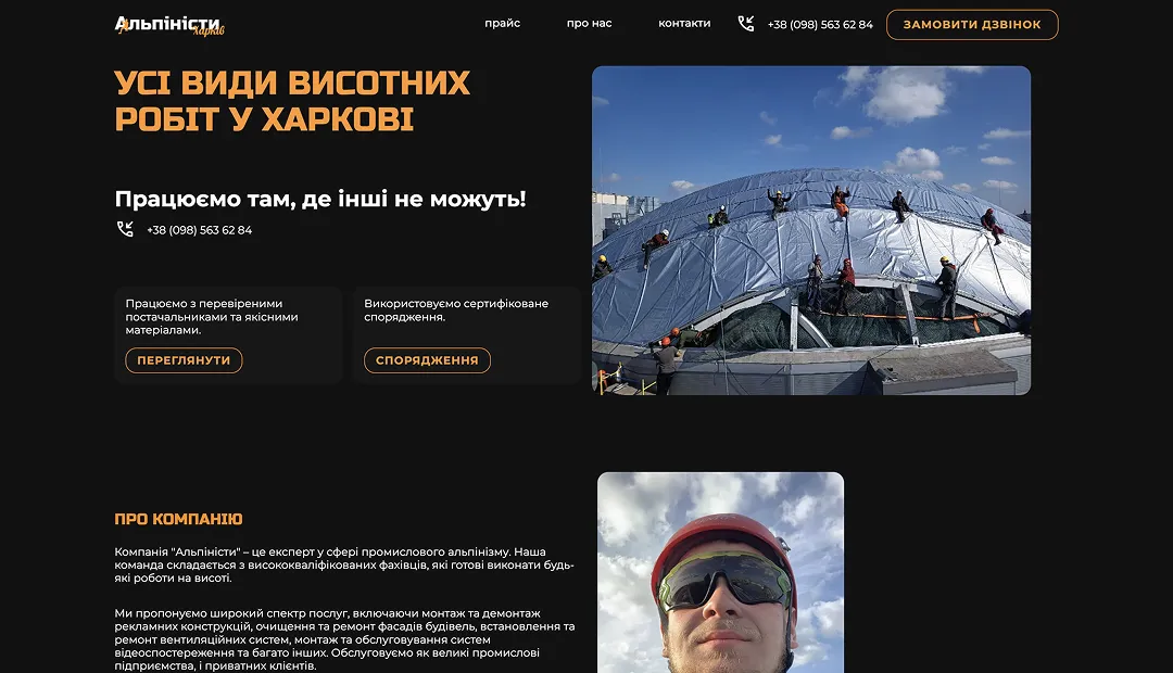 Наш бізнес пов’язаний з висотними роботами, і нам потрібен був сайт, який одночасно викликає довіру та чітко пояснює, що ми робимо: фасадні, покрівельні, висотні, малярні, клінінгові роботи та арбористику.